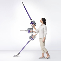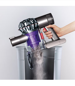 DC62’s floor tool has been engineered to be lighter and improve pick-up. A self-tightening mechanism keeps the brush bar stable and a dust capture channel prevents dirt from escaping back to the floor, increasing pick-up. The new configuration of carbon fibre filaments and nylon bristle strips removes dust and dirt across all floors.