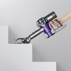 DC62’s floor tool has been engineered to be lighter and improve pick-up. A self-tightening mechanism keeps the brush bar stable and a dust capture channel prevents dirt from escaping back to the floor, increasing pick-up. The new configuration of carbon fibre filaments and nylon bristle strips removes dust and dirt across all floors.